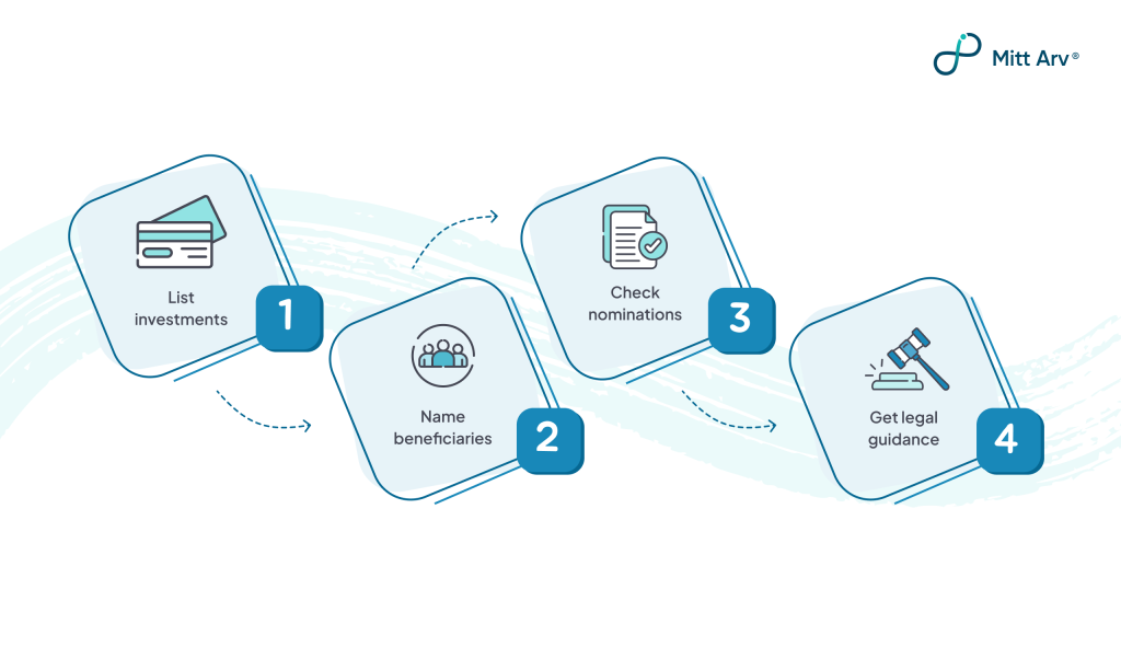 Even missing one share or mutual fund can cause inheritance disputes over shares. Using tools like Mitt Arv’s Asset Vault helps you list all your investments in one secure place, making sure nothing is overlooked.